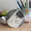 Rebirth is graphite on watercolor paper on coaster, with an art resin coating.