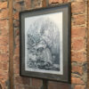 A beautiful swirling of creatures surrounding the spirit of the sea. One of my favorite drawings from this past year. Professionally framed and matted, ready to hang. [Frame is dark stained wood with rectangular gray mat, drawing created in shape of arch. Glass over top.]