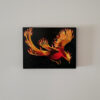 This acrylic painting measures 9″ x 7″ on birch panel and has a depth of 1″. The edges are painted and there is a wire hanger.