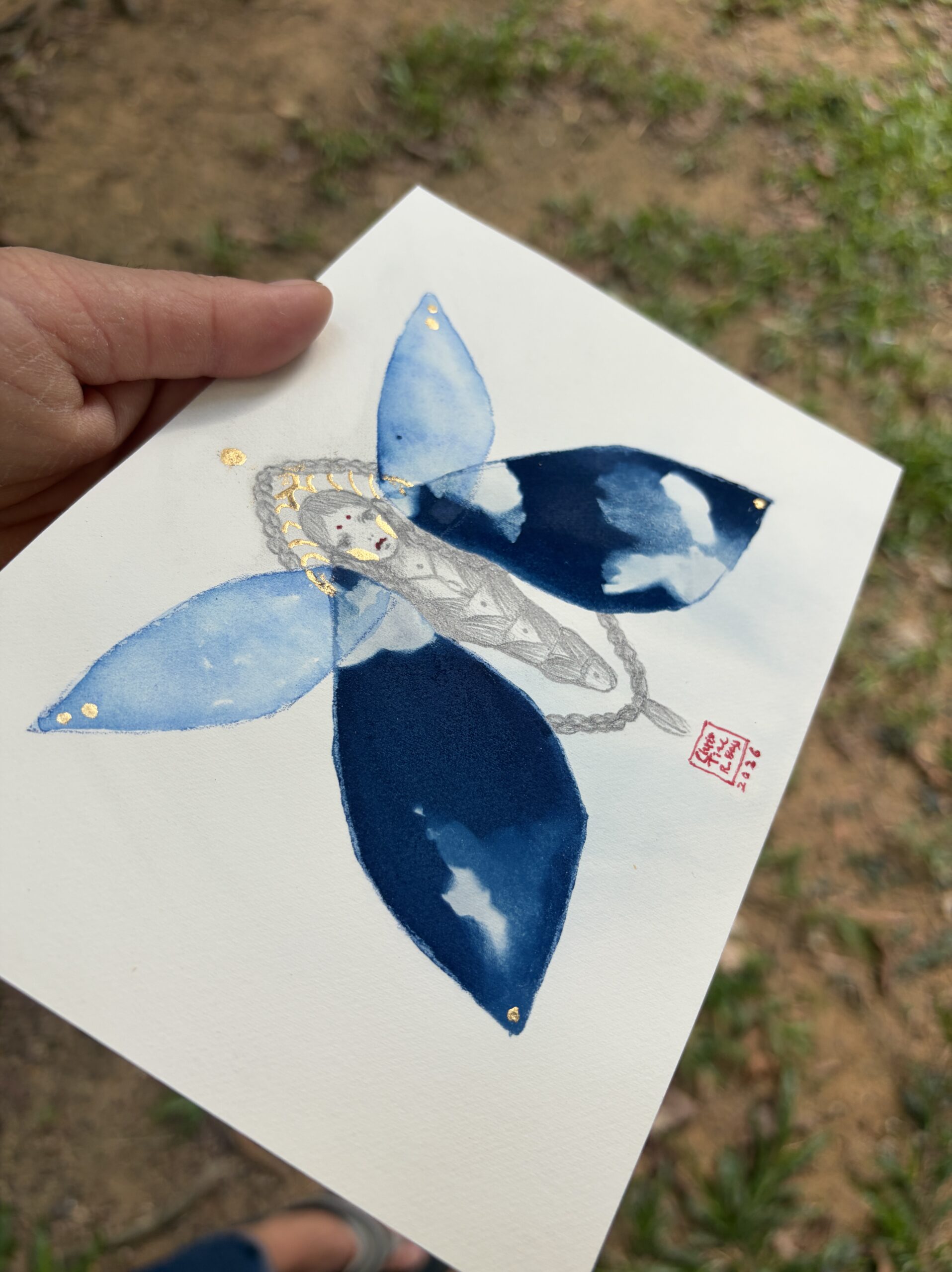 | Medium | Cyanotype, watercolor, graphite, 24k gold leaf, acrylics on Fabriano Artistico hot-pressed paper |