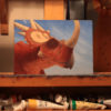 Rubeosaurus was a North American ceratopsian from the Late Cretaceous period, about 74 million years ago. This dinosaur was closely related to Styracosaurus in that they both have one horn above their nose and many horns along their frill. These were beautiful creatures, ceratopsians, with so many different types of head ornamentations and horn configurations. I am slowly working on painting them all, and Rubeosaurus seemed like a fun dinosaur to paint now. I wish there was more to say about this dinosaur but not many fossils have been found, so information is limited.