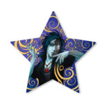 This painting is oil and 24 karat gold leaf on a star shaped Baltic birch wood panel 10″ x 9.5″. Ready to hang.