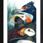 This summer, I’ve been working in Alaska as a deckhand on a wildlife boat. These are three of the more striking birds I’ve seen – Red-Faced Cormorant, Tufted Puffin, and Horned Puffin. Birds always add to the magic and majesty of a landscape – a pop of color and energy in a rainy sea.