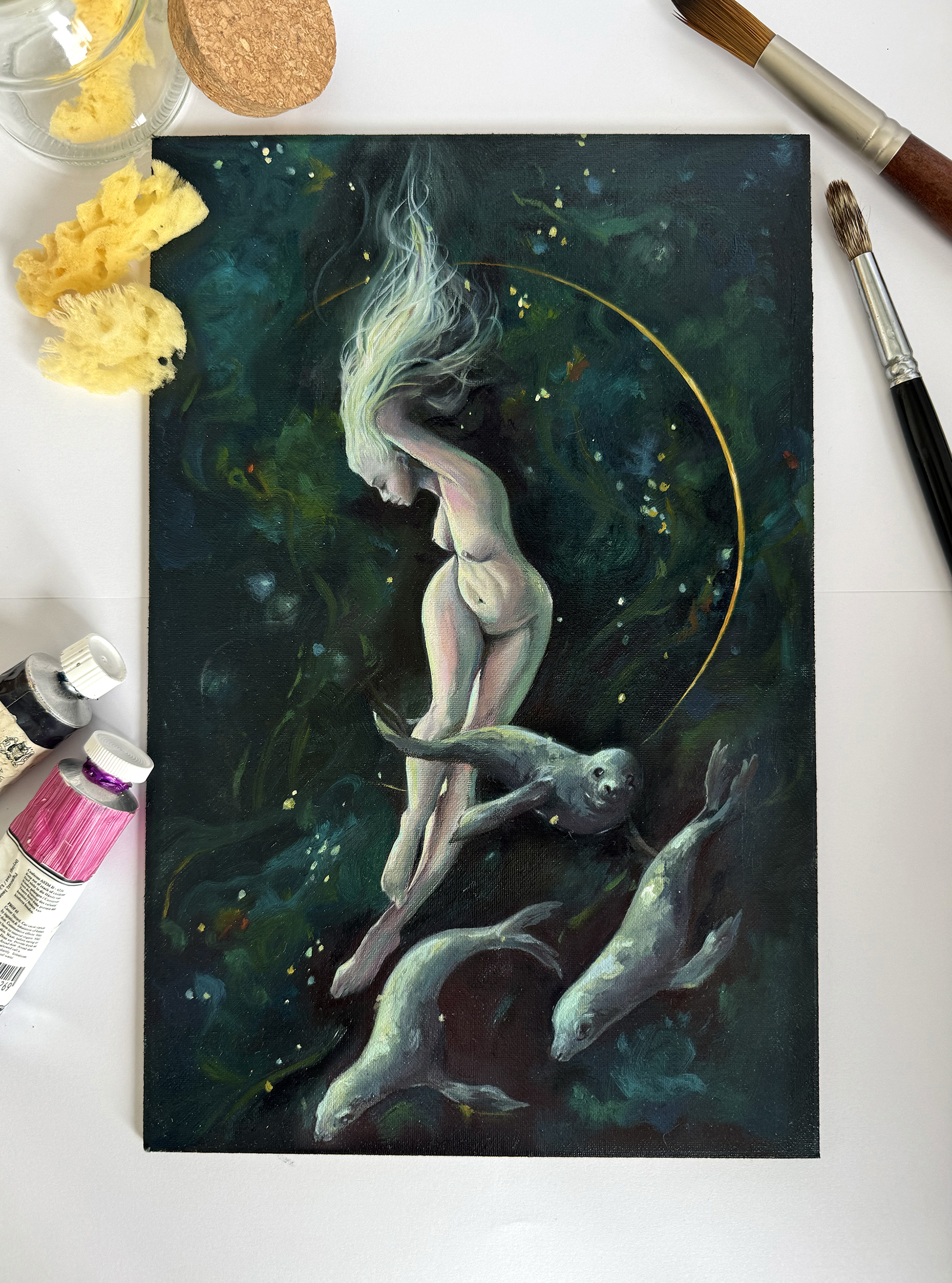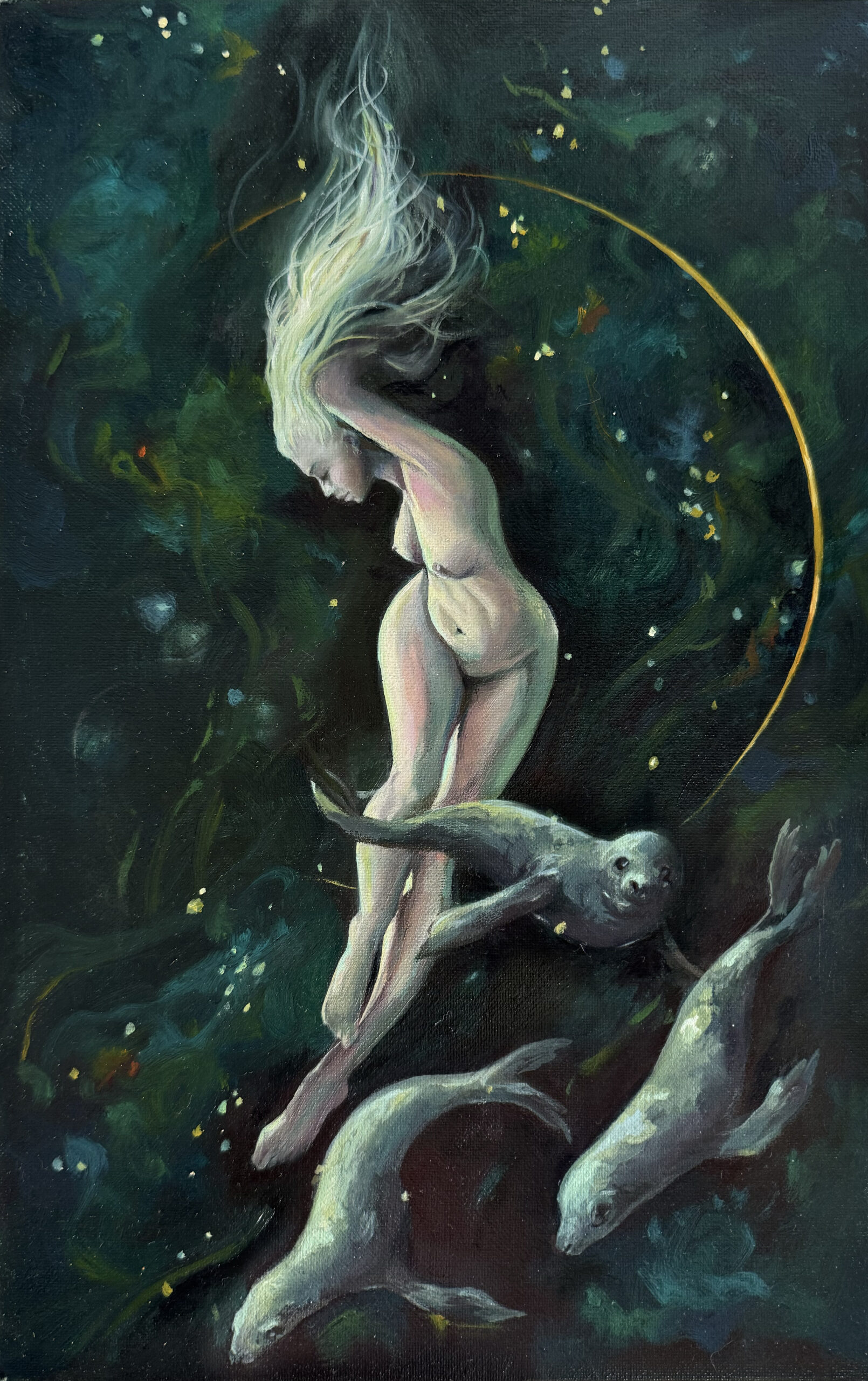 In the cradle of the deep, the Selkie sheds the weight of the shore and slips back into the ancient song of salt and tide…