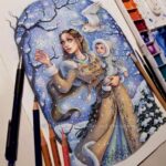 Watercolor, colored pencils, and some acrylic paint, on watercolor paper 140lb/300gsm