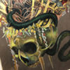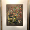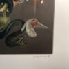 I’ve created a few different versions of this image, it’s transformed itself slightly with each rendition. (Fitting with how memories work.) In the piece available here I’ve created the image on dark gray paper using color pencils, white chalk and gold paint. There are a few other variations planned using this style, this being the first. The gold paint on the crown and embellishments is reflective when the lighting is at the right angle to catch it. The final version will be in oils and in a different color palette, on view at IX con coming up this October.