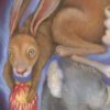 Hares can symbolize vitality and abundance. And each carries before them a Protea flower, a symbol for courage and resilience. Together this piece represents the continued pursuit for these strengths.