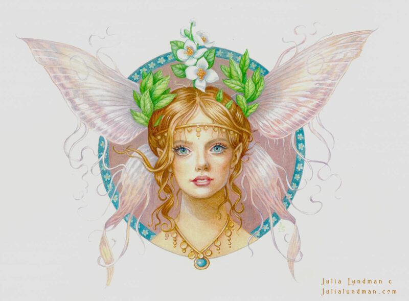 Julia Lundman graduated from the American Academy of Art in Chicago in 1993. Since then, she has worked in animation and games as a commercial artist, first in traditional animation as a background painter, and later as a illustrator for games and books. She has recently taken some time to devote toward development of her personal work, inspired by Victorian fairy painters, the pre-Raphaelites, Brian Froud, Alan Lee, Medieval art, folklore, novels, and the natural world.