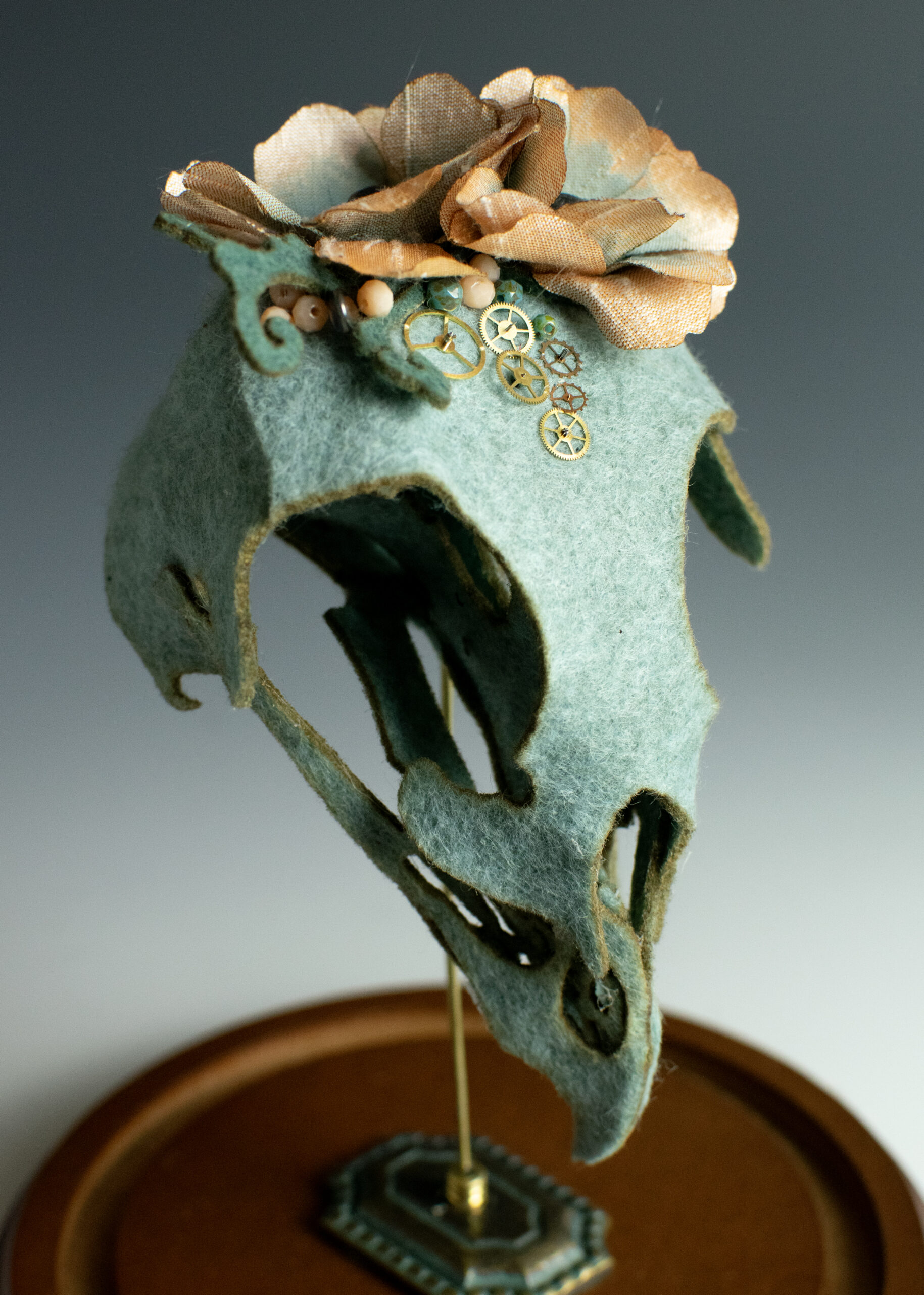 Lana Crooks loves the antique, the creepy, and the mysterious. A textile sculptor by trade, she strives to recreate complicated and delicate skeletal pieces in wool. Constructing creatures from fabrics and found objects, she is a purveyor of faux specimens and soft curiosities. Her personal works are exhibited globally and she is frequently sought after by other artists, to help translate their own creations into fabric. You can usually find Lana in her Chicago studio surrounded by skulls, old books, model ships, a menagerie of stuffed friends, and a cat named Tanuki.