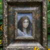 Astute followers will notice that this is not a fully new piece: I painted her late last year, but was never quite satisfied with her. It turns out I’m very glad she hasn’t already found a home, because I finally just recently I figured out what was niggling at me (sometimes we artists are slow to notice things about our work that our audience doubtless perceives immediately!), which is that her nose was a perfectly lovely nose, but not painted at quite the right angle for her face. (Plain as the nose on her face, I can hear you all say!)