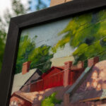 “Summer in Northampton” is an original oil painting, 15″x11,” oil on stretched canvas, and mounted in a handmade black wood frame