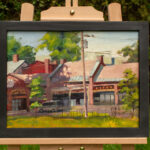 I’m digging back a couple years for this one. In 2018 and 2019, I spent a fair amount of time painting city scenes in Northampton, MA. I love that it tries to welcome a wide variety of people – thus it has also hosted some of my favorite local eateries. Our plein air group set up shop in on the lawn of the massive Forbes library this summer morning, and I could just see the sun beginning to dance across the rooftops of the little brick buildings across the street. One of these was Bistro Les Gras, a farm-focused french restaurant with a particularly excellent wine list. Like many such places during the pandemic, it no longer exists, but when I see this painting, I remember it fondly.