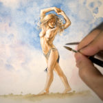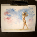 A new watercolor and gouache piece on 9×12 inch watercolor paper. This painting ships framed and ready to hang.