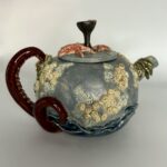 The concept is that this is an old teapot, left behind from some sunken ship, that has been floating in the ocean for decades. Salt has encrusted itself here and there, and the vessel provides a home to various sea creatures such as barnacles and sea stars. Some seaweed found itself caught up on it, and a weathered bronze cup, a little worse for the wear as it’s bent and aged, sits precariously on top. Finally the tentacles of an octopus rise up from the watery depths to possibly take it down to its final resting place, although it’s not yet a given that this is the end of the little teapot.