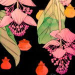 Also known as pink grapes, medinilla grow high in the branches of large rainforest trees of the Philippines, requiring no soil to grow. Overhead, their bombastic inflorescences cascade down in intricate bouquets of pink and purple, attracting many types of bees to them. The cups are palayoks, a clay pot that cooks by sealing in steam.