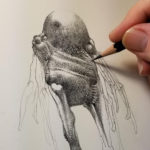 Allen is back drawing his creatures… The Cat Collector is about a 5 x 7″ drawing matted and framed into an 8 x 10″ frame.