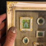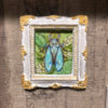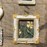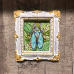 A new in my mini-portrait series. A collection of some of my favorite insects! Cicada, honey bee, jumping spider, praying mantis, dogbane leaf beetle and small blue butterfly. Painted in acrylics on archival paper, with gold leaf paint on tiny molded frames.