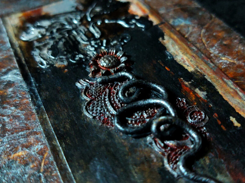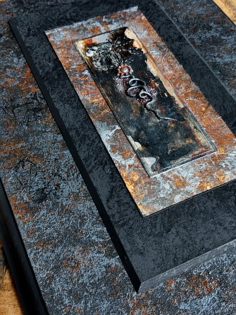 acrylic, mixed media, bas-relief and sculpture