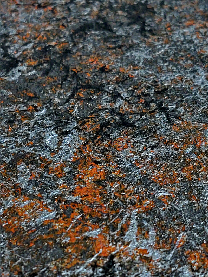 The highly-tactile, mixed-media painting entitled The Fallen Blossom Still Blooms is about strength, endurance and resilience. The multi-dimensional work embraces our ability to get back up when we have fallen, planting deep roots and blooming even in the darkest of times.