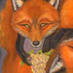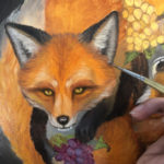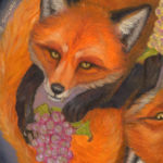 Oil on archival paper on wood. The grapes and eyes have gold painted accents. This piece can be hung in multiple directions.