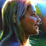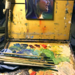 Smooth surfaces catch the paint much nicer than canvas. Because of the smooth surface more broken colors can be added minutely adding more color harmony and more atmosphere to the overall color spaces. I really like capturing dramatic lighting and a good back-lit face with light passing through the hair is a very tempting subject to capture. This is a small oil painting on a 6″ x 6″ primed panel, full color palette by DaVinci Oils and painted with Rosemary Sables and Escoda Bristles.