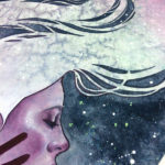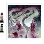 “The Oracles” was painted with watercolor, duochrome pigments, and gouache on hot press illustration board measuring 12″ x 12″ with an additional 0.5″ unpainted boarder.