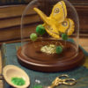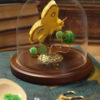 Displayed under 6.5″h glass dome on wood base.