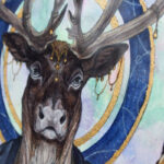 Painted in watercolor, gouache and colored pencil on 140lb Arches hot press paper, accented with 23K gold leaf.