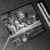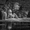 “The Romantic Temple at dusk” is 6×6″ ink on claybord.