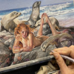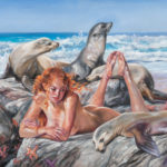 Her subjects are often embattled, finding or losing their own power. They deal with what the unconscious conveys beyond the armor of the exterior, and the need to cover up the unseemly with something beautiful.