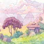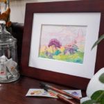 Arches watercolor paper. Hints of metallic gold paint for highlights.