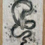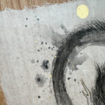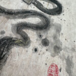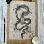 This dragon was painted using black and gold sumi ink on quality Korean Hanji paper measuring approximately 9.5×14 inches. The paper is mounted on 11×17 inch real cherry wood paper with acid free Nori paste. And finally, it is stamped with my name on the bottom left along with a mood stamp on the bottom right that roughly translates to “good will extends life.” The art will look great under a glass and framed.