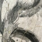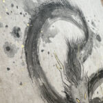 I decided to return to oriental painting for this piece, as I love the abstract way a sumi ink brush stroke can convey a mythical creature. I pulled out my materials and supplies from when I was studying abroad in South Korea back in my college days, and it was wonderful reintroducing myself back to this style of painting.