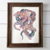 “These Slow Moments, They Writhe” is an 18″ x 24″ watercolor painting on tick, Arches hot-pressed paper. This work ships framed and the framed dimensions are 22″ x 28 1/2″