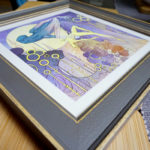 6.5 x 6.5 inches, mixed media (watercolor, gouache, ink) on hot press watercolour paper. Thread and petals are gold metallic ink