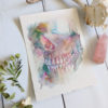 This month I have been taking such joy in playing with watercolor and staying as loose as I can until the very end. The loose mingling of colors and charging wet into wet spaces, and also having the tight detail of teeth makes my heart go pitter patter.