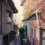 Tight Corridor is a watercolor painting I have done studying the tight spaces and changing lights from one set of buildings to another.  It is hard to capture the brilliance of light without some kind of visual sacrifice and this was a great test in that concept.