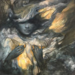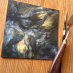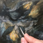 “To See The Wind” is a mixed media piece, started in graphite on gessoed panel, and finished in acrylic (see images for some WIPs too, also to show scale). Painted from imagination, this painting is inspired by a dream depicting what I saw as a liminal state with a show of support in feathers swirling all around me, but never actually ever falling to the ground. I took it as a beautiful sign of transition, insight, protectiveness, and strength – a wider awareness in a time when the thought of what’s next seems daunting – to see the wind by way of seeing feathers floating in it as if to say that the direction is only determined by what I choose – to go with where the wind takes me – and that there will be help and hope all around me, everywhere I may look to find it, in any or all of those directions.
