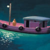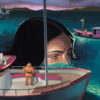 Trouble on the Water, gouache on Arches watercolor paper, 10 x 14 inches. Matted, framed, and ready to hang.