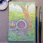 Two small watercolor Hobbit paintings. Inspired by my love of Middle Earth and the captivating landscapes of Scotland and New Zealand.
