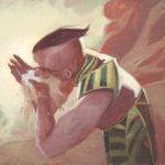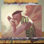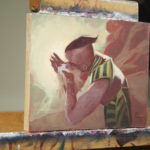 An original oil study for the Magic the Gathering card, “Unquenchable Thirst”. The Card was released in the “Hour of Devastation” set. This is one of three study options and is the composition that is featured on the card. Painting is on Belgian Portrait Linen mounted on 1/2″ pine board.