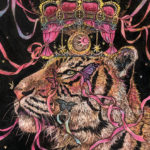 In this work [Until the End] , the tiger is full of energy and powerful but lonely. Ribbons shows the connection with the others that the king tiger wanted to have or already had before (but not connected to the others now).