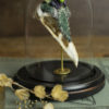 Hand-beaded, wool skull with silk, antique lace, beads, and brass under glass