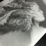 I started this piece by laying down some marks with kneadable graphite, and letting the randomness of it lead my hand.