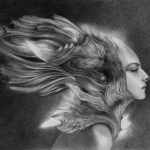 As I did this piece I kept seeing her walk dark underwater pathways, guided by her own light. She would see vague, hulking things swimming at the edges of her illumination and she knew that they were afraid of her. Afraid but enthralled by her. She was the queen of cold currents and black waters and she knew her kingdom well.
