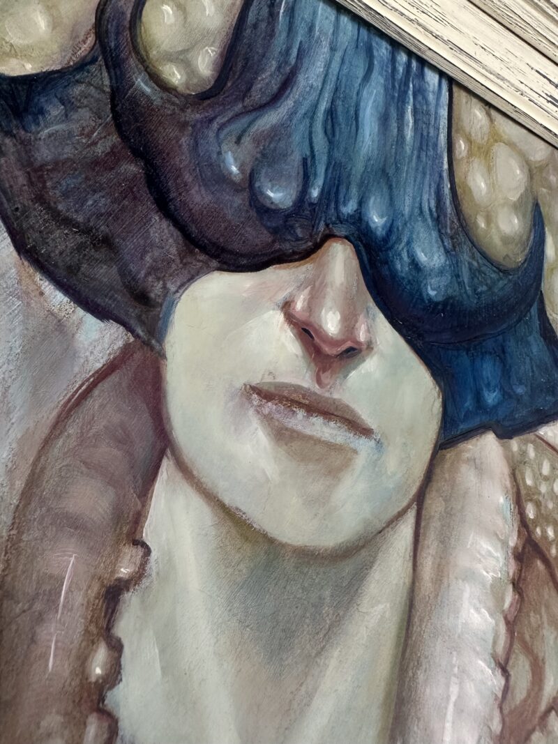 If you’ve met Grant Cooley, you’ll know first what a lasting commitment he has to this work, and also how hard it will be for me to sum it up in just a few words. This piece was one of the first that Grant created when he first branched out into the style of work he’s now known for. Grant will never stop exploring, never stop creating, and as you can read below, never stop pushing against the pressure on an artist to do so with thoughtfulness and intention. Grant is certainly larger than life in person, and what I love is that this piece gives us a glimpse into the inner world he shares with all of us.