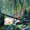 “Winding Down, Carpenter’s Falls” is an original oil painting, 12″x9,” oil on oil-primed linen, and mounted in a 3/4″ antique gold and black floater frame.