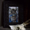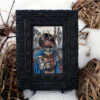 He works primarily in ink, watercolor and gouache (often embellished with metal leaf), creating pieces inspired by folklore, history, and nature.