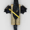 This dragon travels through time and space, collecting stories from universes far beyond our knowledge, locking them inside its chest, using the golden sword as a key. When she finds a life form that she deems worthy, she removes her sword to release the wisdom she has collected in exchange for the stories from her new found civilization’s past, furthering her own knowledge and compassion for those she meets.