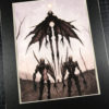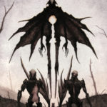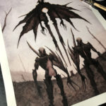 This painting was done with watercolor and gouache and is from a series of paintings I’ve been developing that takes place in world plagued by spiritual warfare between the light and dark.